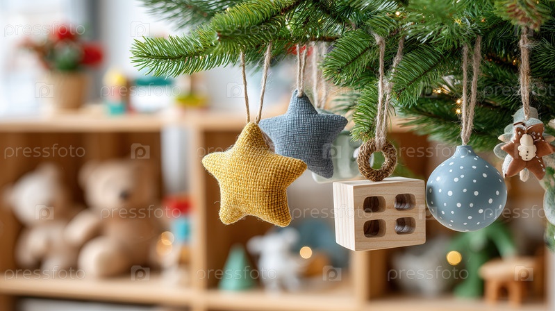 Рождественские украшения ручной работы, висящие на дереве