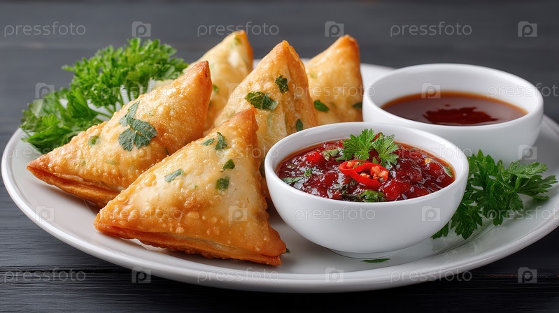 Самоса подается с поливными соусами