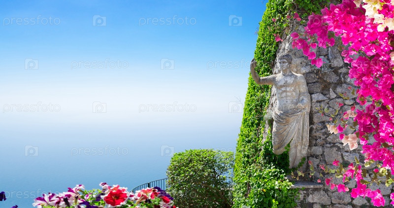 Вид с горы Соларо на Тирренское море, детали острова Капри, Италия, формат веб-баннера