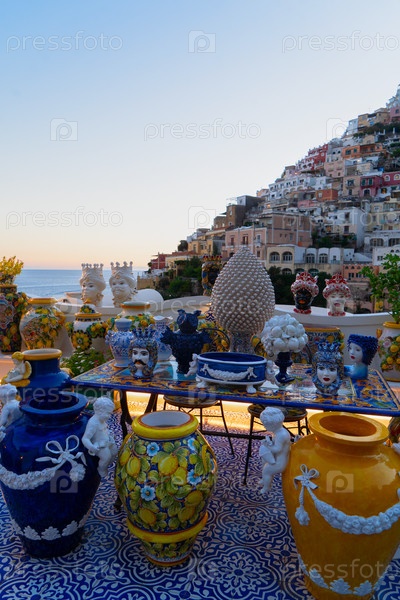 Залив Позитано ночью - знаменитый старый итальянский курорт, Италия