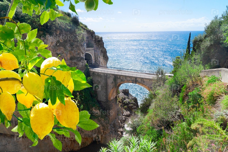 Знаменитая живописная извилистая дорога побережья Амальфи, лето в Италии
