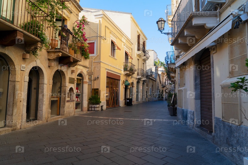 Старая улица Таормины в летний день, Сицилия Италия
