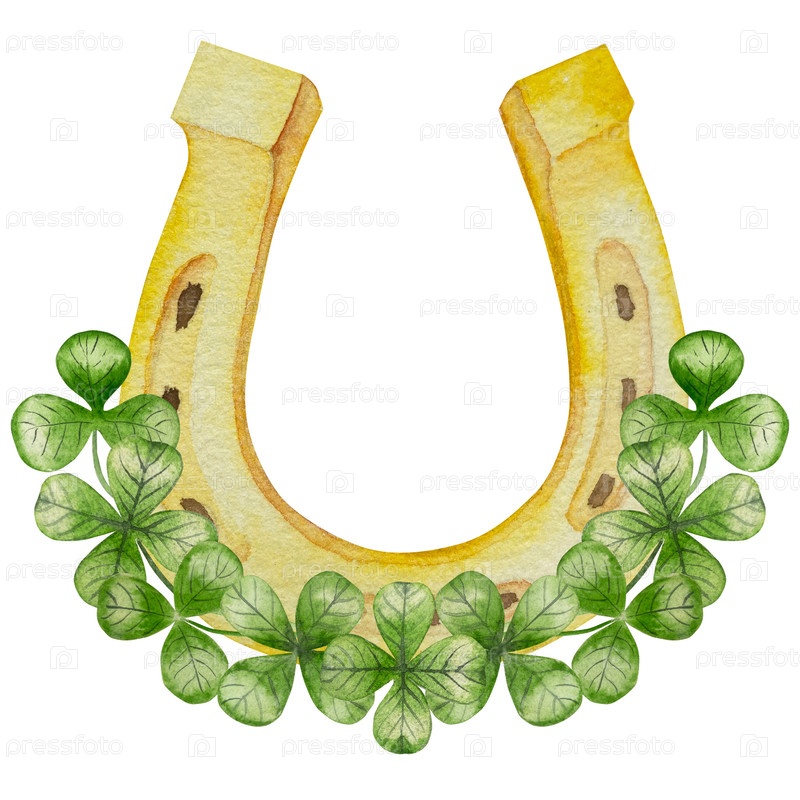 Набор акварельных иллюстраций ко Дню Святого Патрика. Рука нарисована изолированным клипартом с шапкой лепрекона, клеверами, золотыми монетами, ирландским флагом, зеленым пивом и горшком золота. Талисманы для удачи, богатства или успеха. Коллекция предмет