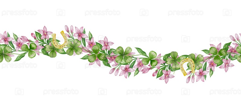 Набор акварельных иллюстраций ко Дню Святого Патрика. Рука нарисована изолированным клипартом с шапкой лепрекона, клеверами, золотыми монетами, ирландским флагом, зеленым пивом и горшком золота. Талисманы для удачи, богатства или успеха. Коллекция предмет