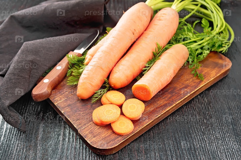 Морковь свежая на темной доске