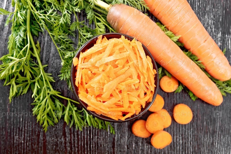 Морковь тертая в чаше на доске сверху