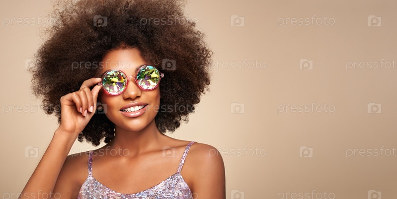 Портрет красоты афроамериканской девушки в цветных солнцезащитных очках