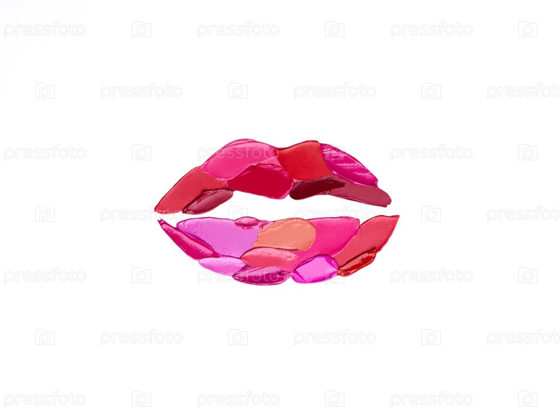 Розовая помада, смазанная в форме губ