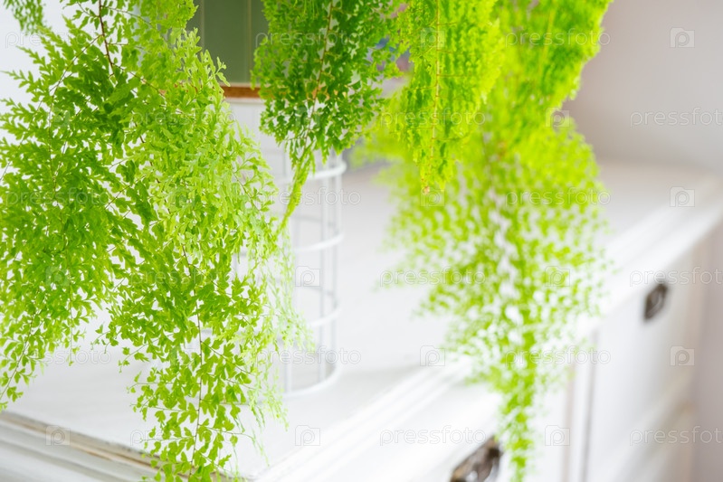 Пышный папоротник в белом лофт-стиле интерьера. Нефролепис Мариса - разнообразный декоративный папоротник