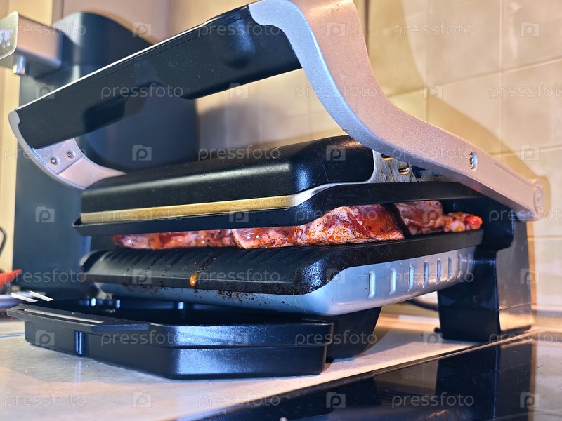 Куски выглядит как электрический гриль. Куски мяса на электрической гриле