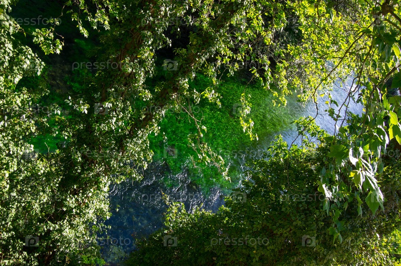 Изумрудно-зеленая текущая река