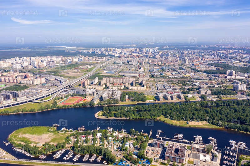 Санкт-Петербург, Россия. 65-й муниципальный округ Санкт-Петербурга, Западный скоростной диаметр. Вид с воздуха