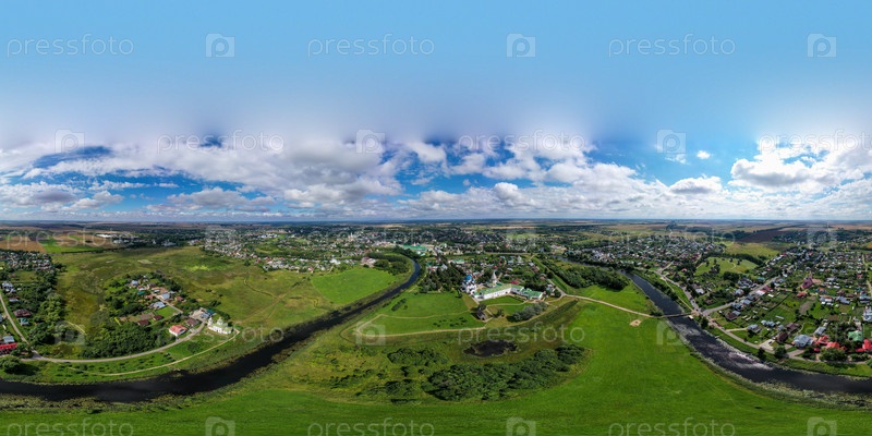 Суздаль, Россия. Летняя панорама города. Вид с воздуха