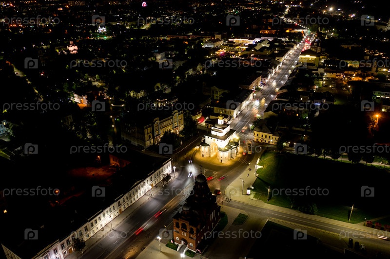Россия, Владимир Золотые ворота (Владимир). Вид на воздух ночью