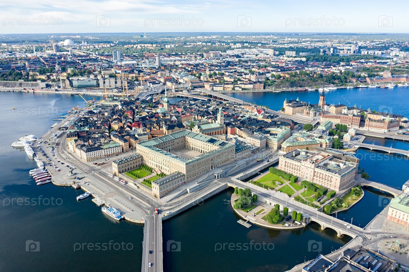 Стокгольм, Швеция. Панорама города. Старый город (Gamla Stan), Королевский дворец аэрофотосъемка