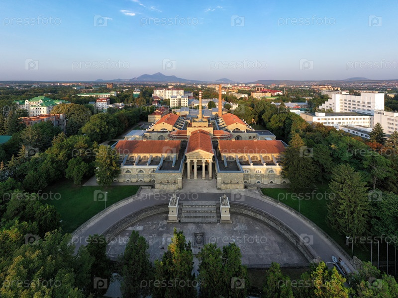 Эссентуки, Россия. Есентуки бальнео-грязевые ванны. Самый известный архитектурный памятник курортного города. Вид с воздуха
