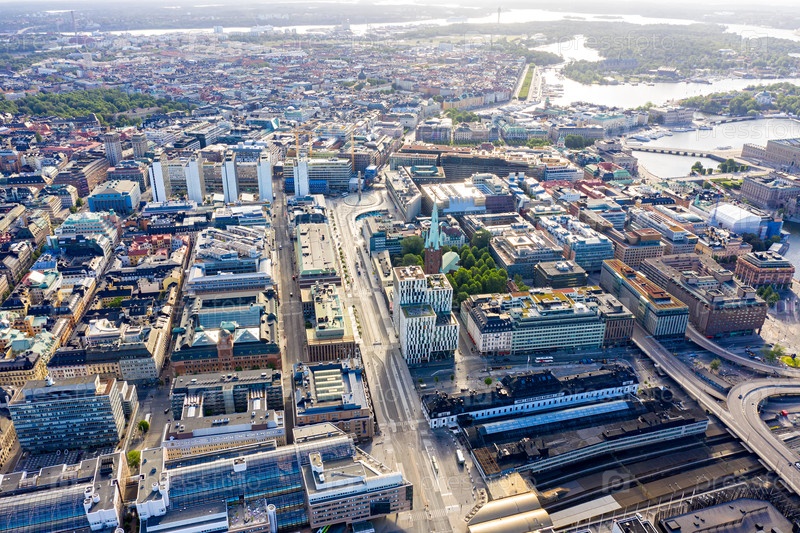 Стокгольм, Швеция. Панорама города. Деловая часть города, вокзалы. аэрофотосъемка