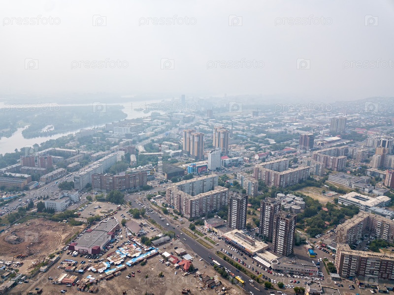 Россия, Красноярск, Вид на город сверху, аэрофотосъемка