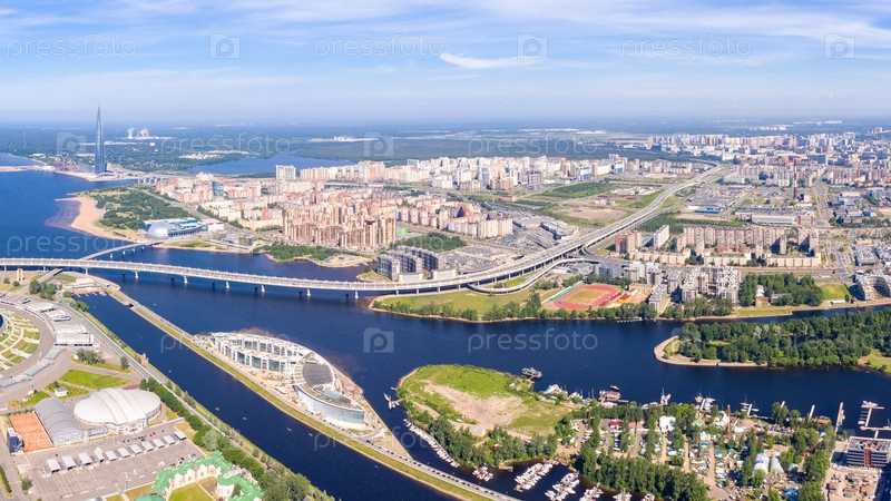 Санкт-Петербург, Россия. 65-й муниципальный округ Санкт-Петербурга, Западный скоростной диаметр. Вид с воздуха