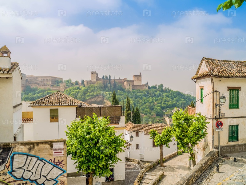 Вид на Альгамбру с холма арабского района, Гранада, Испания