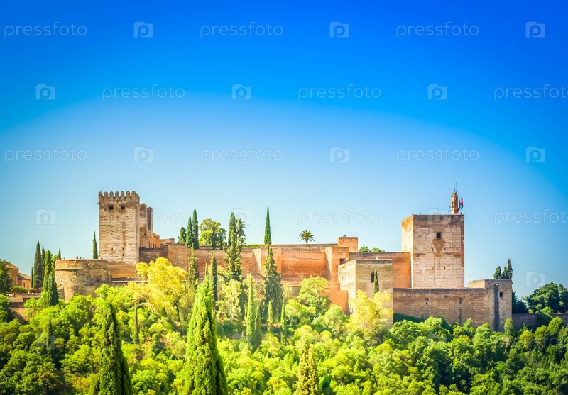 Крепость Альгамбра на вершинах холмов, Гранада, Испания