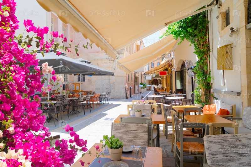 Уютная улица старого города Ретимно, Крит, Греция, Retro Toned