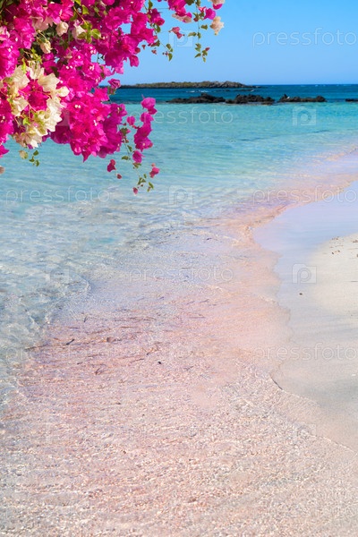 Синий и розовый цвета пляжа Элафониси, Крит, Греция, тонированный