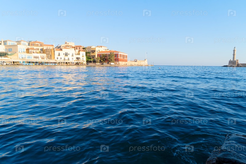 Венецианская гавань Ханья с историческими домами в солнечный день, Крит, Греция