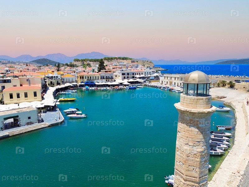 Гавань и маяк старого города Ретимно, Крит, Греция, Retro Toned
