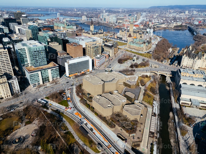 Вид с воздуха на Оттаву и Гатино с рекой, мостами и городским ландшафтом под ясным небом. г