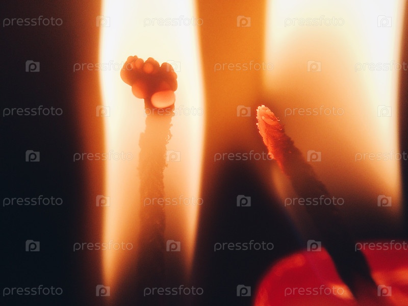 Световая свеча с горячим огнем ярко горит в размытом темном блэкгроунге. Макро