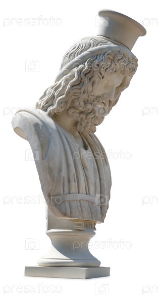 Мраморный бюст верховного древнегреческого бога Зевса изолирован на белом фоне. Элемент дизайна с обрезкой пути