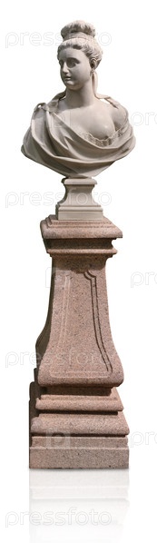 Мраморный бюст древней богини или героини изолирован на белом фоне. Элемент дизайна с обрезкой пути
