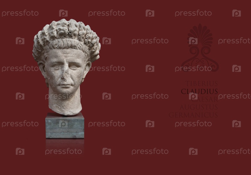 Копия античного скульптурного портрета римского императора Клавдия изолирована на красном фоне