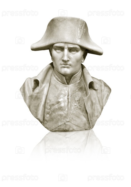 Мраморный бюст французского императора Наполеона Бонапарта в 1812 году изолирован на белом фоне. Неизвестный скульптор после бронзового оригинала Ренцо Коломбо. Элемент дизайна с обрезкой пути
