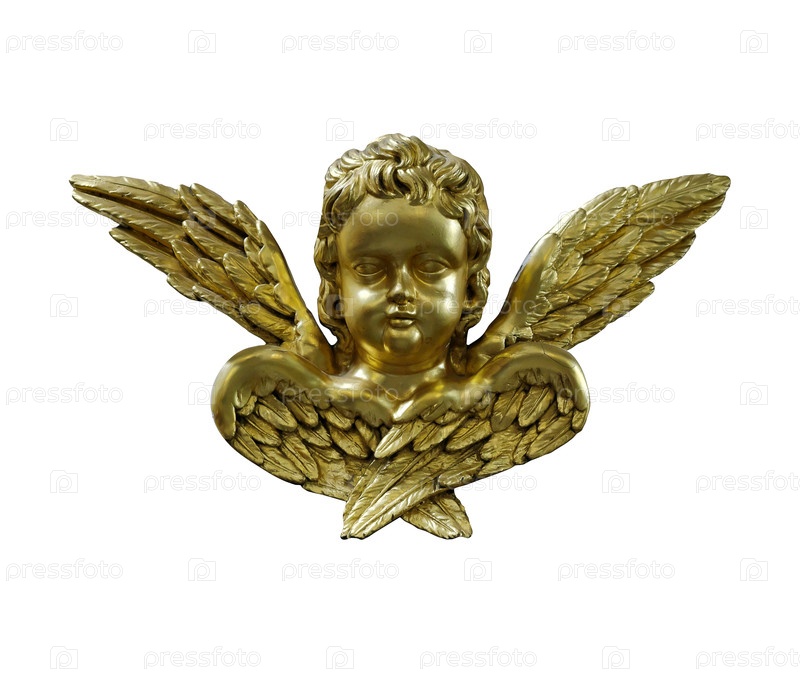Золотые ангелы изолированы на белом фоне. Элемент дизайна с обрезкой пути