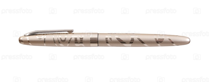 Золотая перьевая ручка изолирована на белом фоне. Элемент дизайна с обрезкой пути