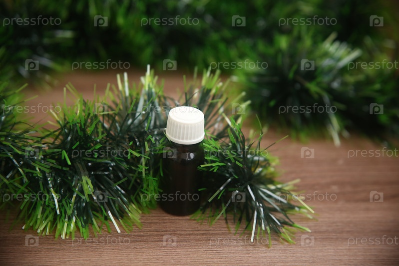 Бутылочка с кедровым маслом на деревянном столе