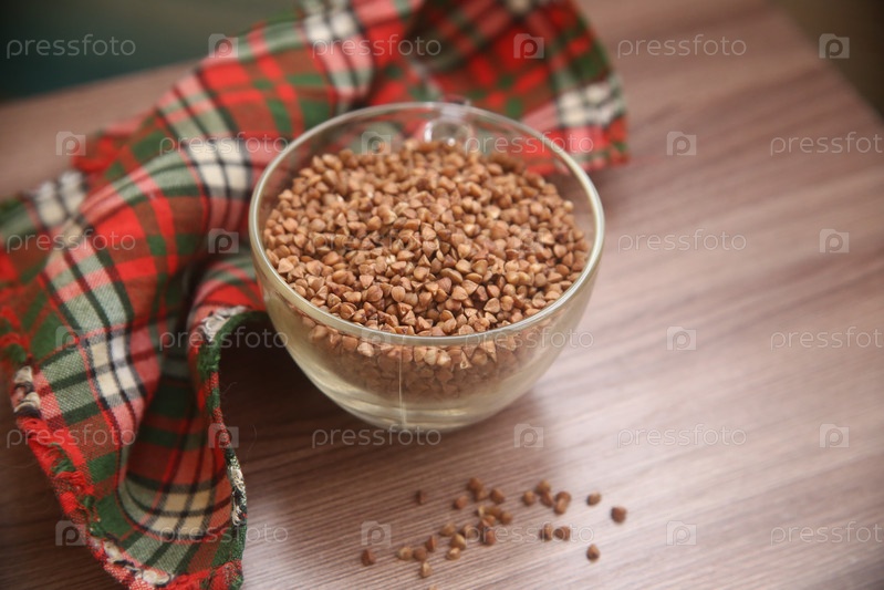 Чашка с крупой гречи на столе