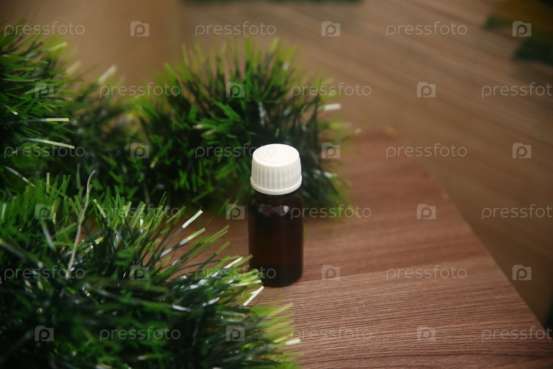 Бутылочка с кедровым маслом на деревянном столе