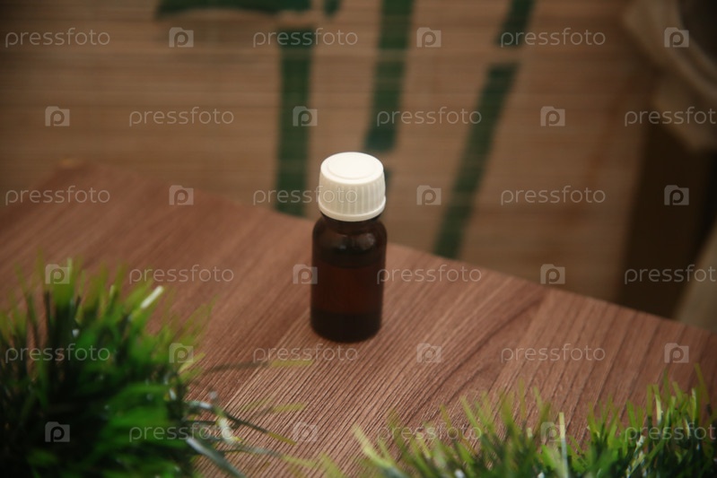 Бутылочка с кедровым маслом для массажа на столе
