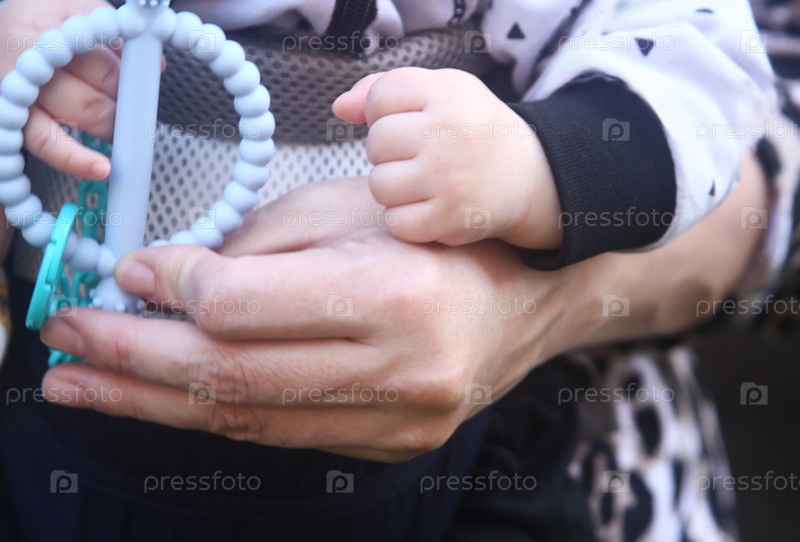 Рука женщины и ручка ее маленького ребенка крупным планом