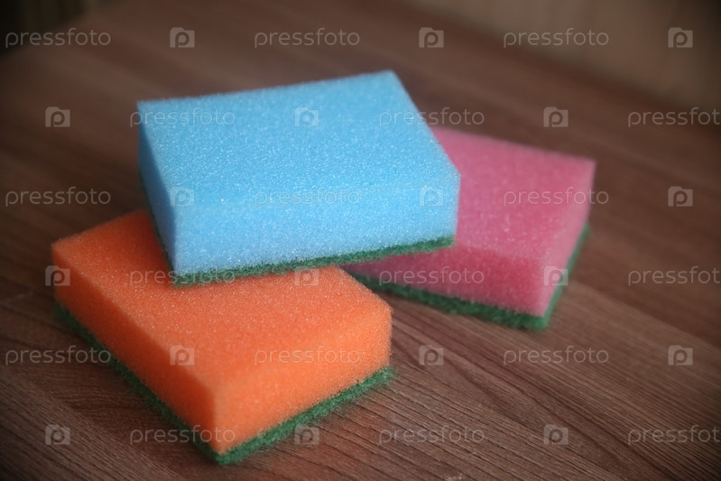 Три поролоновых губки разного цвета для уборки