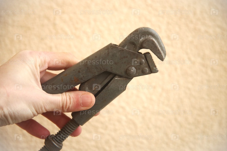 Газовый трубный рычажный ключ для ремонта в мужской руке