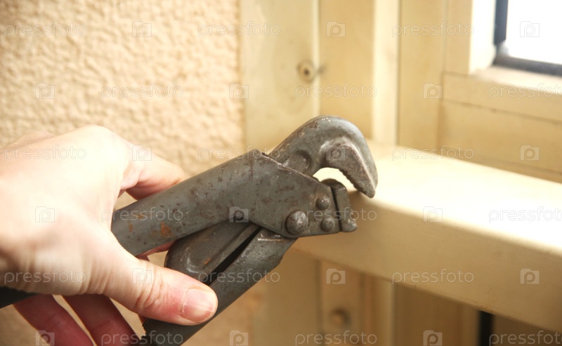 Газовый трубный рычажный ключ для ремонта в мужской руке