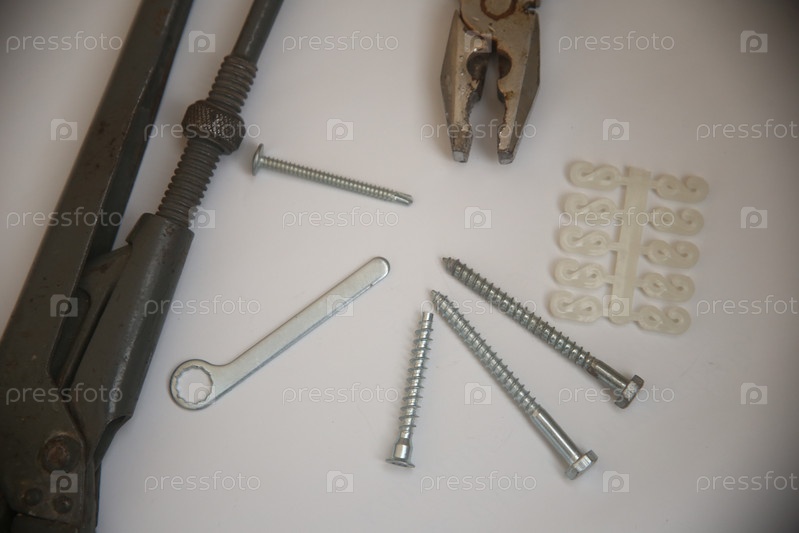 Тески, гвозди, плоскогубцы и другие инструменты для ремонта на столе