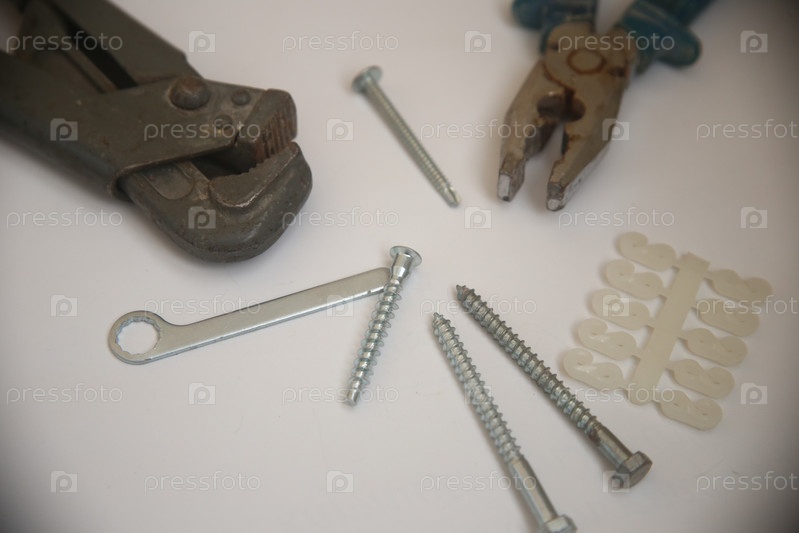 Тески, гвозди, плоскогубцы и другие инструменты для ремонта на столе