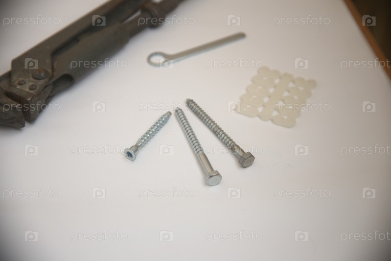 Тески, гвозди, плоскогубцы и другие инструменты для ремонта на столе