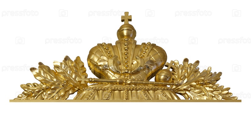 Золотые декоративные венки и корона изолированы на белом фоне. Элемент дизайна с обрезкой пути