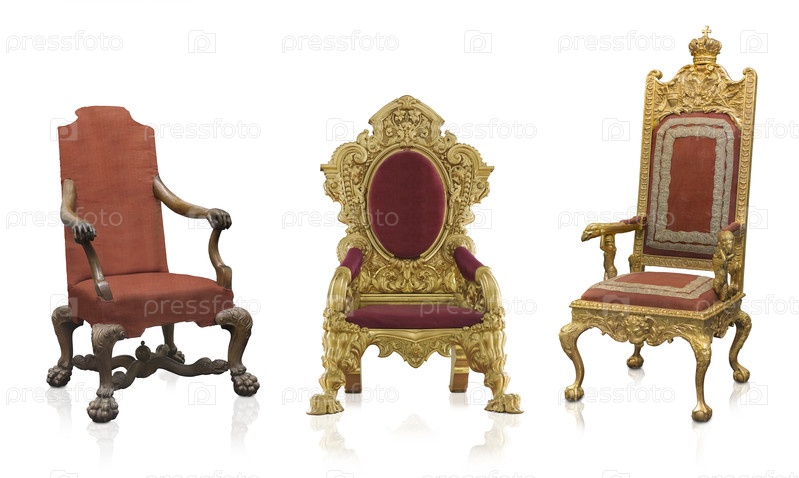 Древнее деревянное кресло, украшенное крылатыми львами, изолировано на белом фоне. Элемент дизайна с обрезкой пути